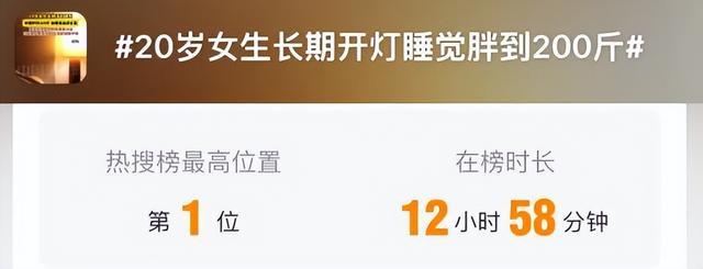 有些人觉得,开灯睡顶多影响睡眠,没什么大不了。然而,此前浙江宁波一名20岁女生却因为长期开灯睡觉,体重飙升到200斤,还查出空腹血糖超标、血压升高,引发了广泛讨论。